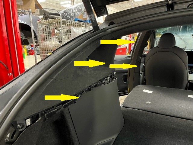 Install LH mid C-pillar trim