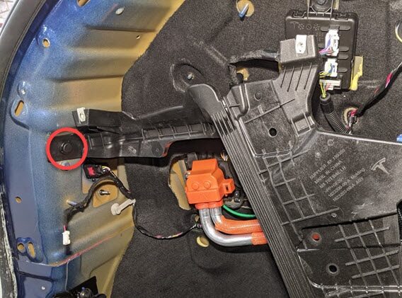 NoteMake sure to wear PPE (HV gloves, safety glasses) when working on high voltage component, Measure B+ to B-, and B+ to Ground (use trunk striker as a ground for the isolation check) If voltage is greater than 10V, Pack contactors are not open or welded, Stop work and reach out to Service Engineering,