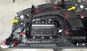 Note21x clips, 6x datums, 4x connectors, Release each IP decor connector clip from IP carrier then disconnect from IP harness