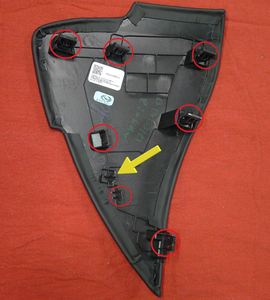 Note2x clips, 3x datums, Release clips from upper A-pillar and IP sub assembly, Lift mid A-pillar trim out of lower A-pillar trim