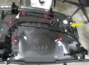 Note6x clips, 5x tabs, Release clips, then slide bezel towards front of vehicle to release