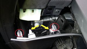 Note2x connectors, 1x clip, 6x tabs, Release 2x locking tab on airbag connector