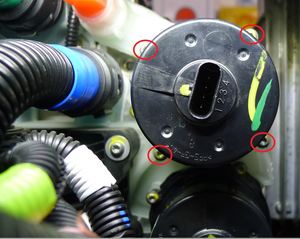 | Screws (x4) that attach the powertrain coolant pump to the supermanifold |