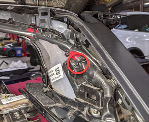 Install bolts securing 2nd row LH monopost under belly trim