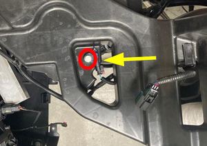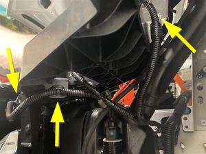 - Release the clips (x3) that attach the electrical harnesses to the LH headlight bracket.