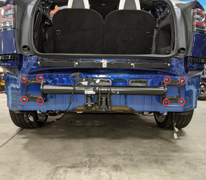 the vehicle, and then install the nuts (x4) that attach the hitch assembly to the body