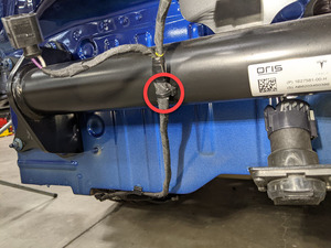 - Install the clip that attaches the LH body harness to the trailer hitch assembly.