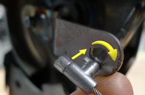 NoteRotate the keyed cable clockwise to install it to the recliner release arm eyelet.