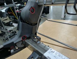 - Install the clips (x2) that attach the RH 2nd row recliner cable to the rear of the seat cushion frame.