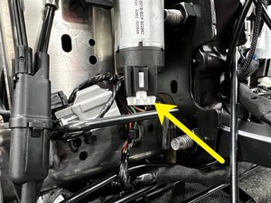 - Secure the black connectors (x2) to the LH 2nd row seat frame, and then connect the electrical connectors (x4).