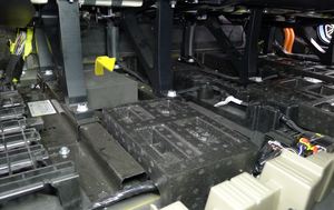 adhesive that attaches the RH 2nd row rear floor supports to the vehicle, and then