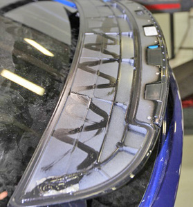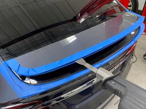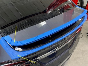 the edges of the spoiler applique and liftgate to prevent any paint damage when cutting