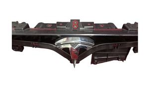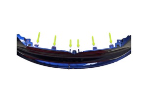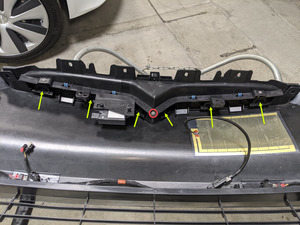 - Position the front fascia V-bar onto the front fascia T-badge support, and then secure the clips (x4) that attach the V-bar to the T-badge support.