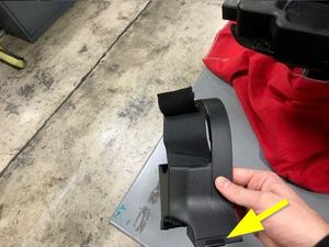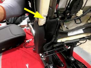 - Remove the clip that attaches the LH inner B-cover to the seat frame.