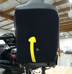 - Secure the elastic bands (x2) at the RH 2nd row seat inboard outer hinge cover.