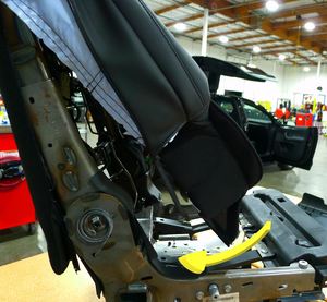 - Install the clip that attaches the LH inner B-cover to the seat frame.