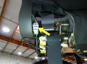 - Secure the clip that attaches the seat harness to the RH 2nd row seat assembly, and then connect the heater and seat belt reminder electrical connectors.
