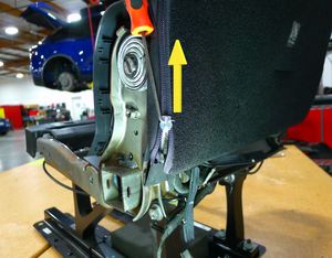 that attach the upholstery to the seat back, and then fold the seat back over the