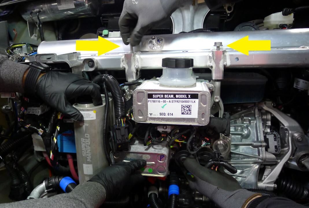 Note3x bolts, 10mm, 9 Nm, 1x connector, Secure connector before install, Rotate module rearward and up into place