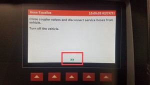 NoteRemove low side coupler from vehicle, Turn vehicle off, Verify Hose Equalize settings, Machine will chime once process is complete