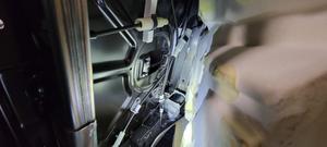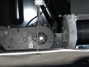Cut the zip tie that attaches the LH 3rd row seat recliner actuator cable to the seat