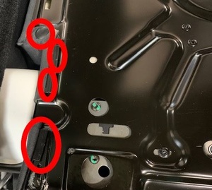 - Route the LH 3rd row seat connectors (x2) around the lower section of the upholstery, and then connect the connectors.