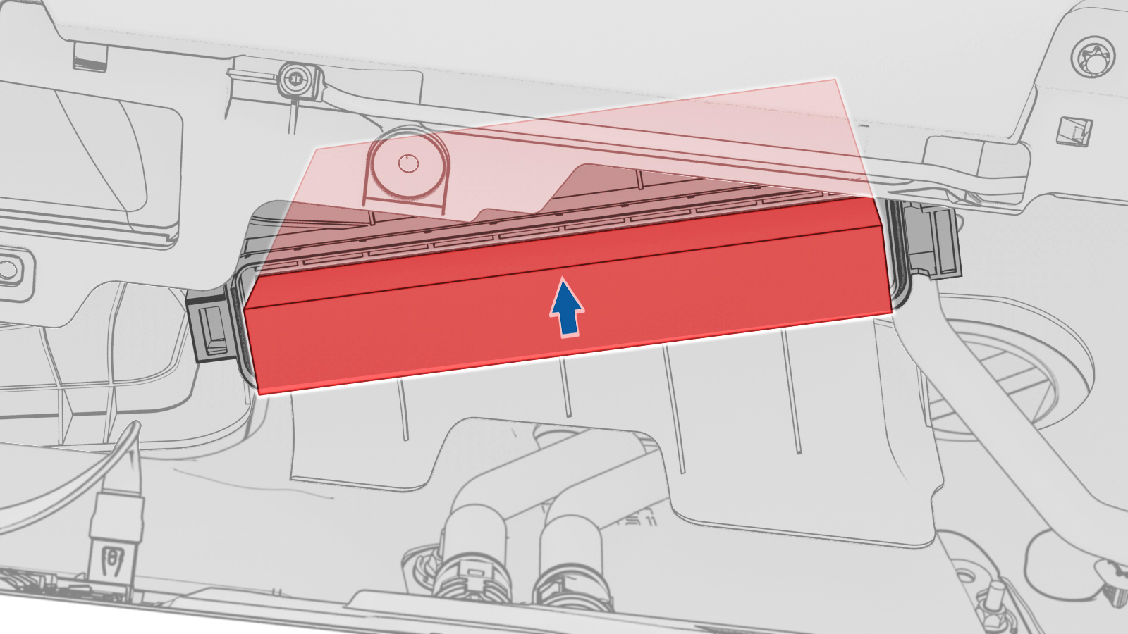 - Note the direction of air flow printed on the filter, and then remove the cabin filter.