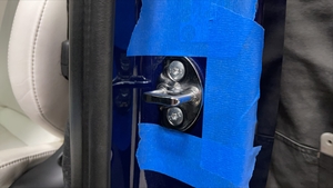 - Use masking tape to mark the position of the LH front door striker on the body.