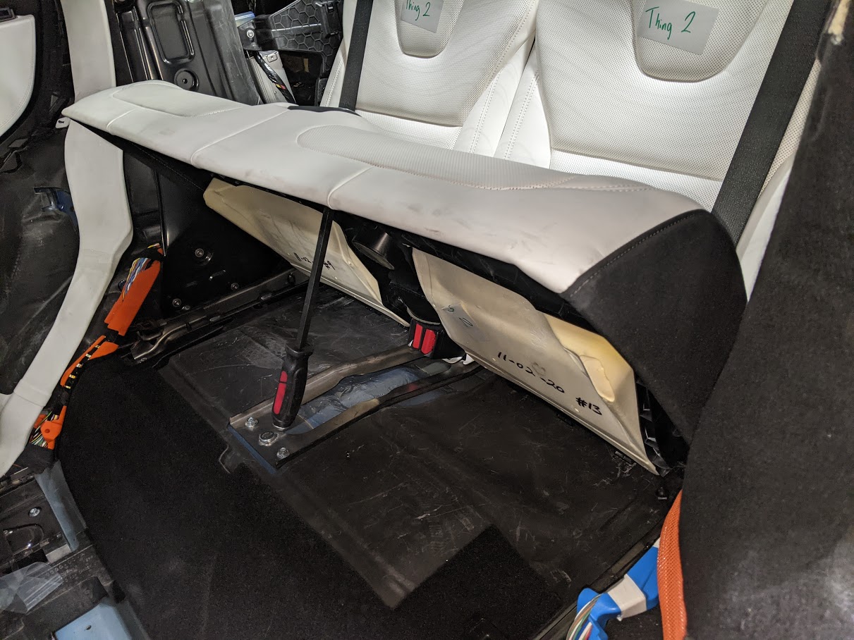 - Release the clips (x8) that attach the 3rd row seat cup holder closeout to the seat cushion.