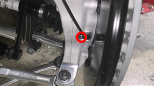 - Loosen the LH front axle nut.