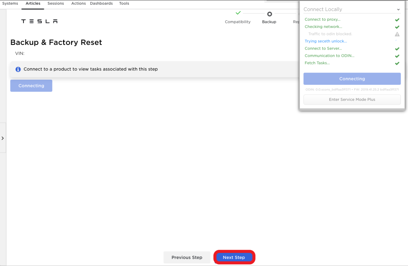 - Re-establish the Toolbox laptop connection, and in the "Replace" page, click Next Step to go to the "Associate" page.