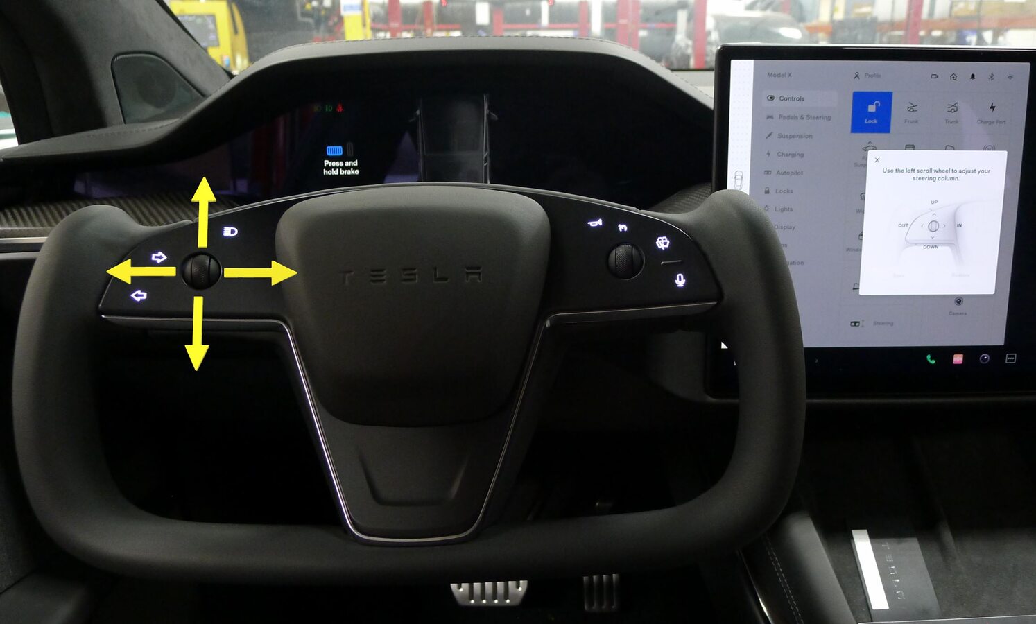 NoteVia UI > Controls > Steering , Use left steering wheel scroll wheel to adjust steering column