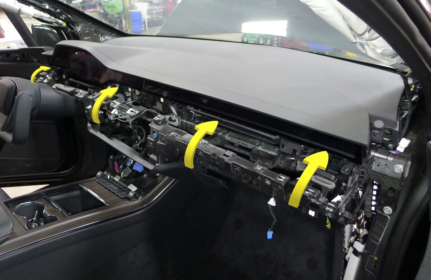 - Route display harness behind LH display bracket