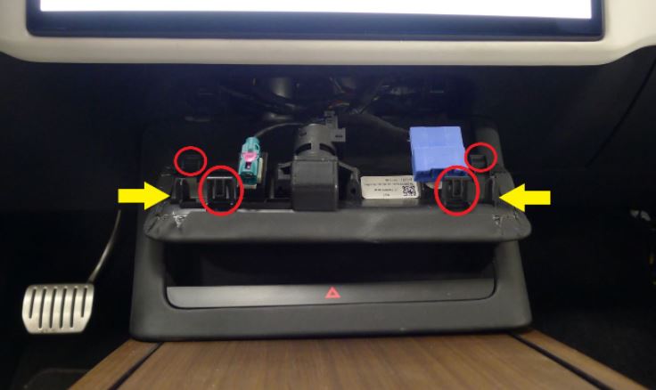 Note4x clips, 2x datums, Pull up at bottom and swing out from under instrument panel