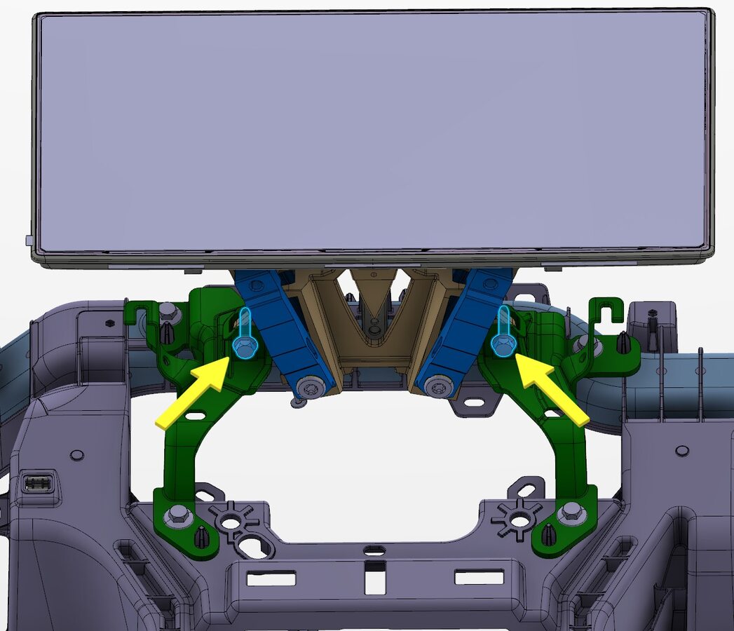 Note2x bolts, 10mm, 11.5 Nm, Slide center display into IP carrier, Start RH bolt first