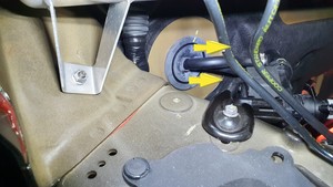 - Install the clip that attaches the battery supply hose to the RH side of the frunk harness.