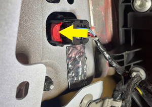 - Release the red locking tab, and then disconnect the LH C-pillar accelerometer electrical connector.