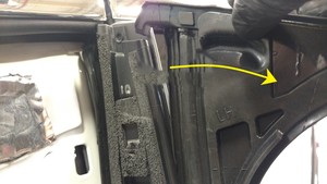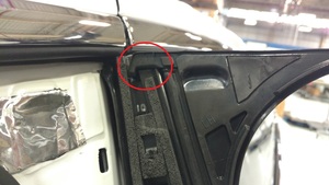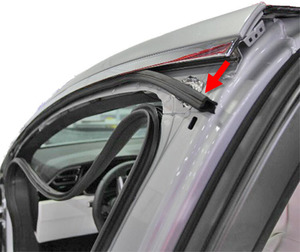 - Inspect the upper LH B-pillar applique seal to make sure it is fully seated and adjust as necessary.