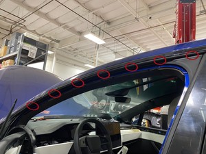 - Secure the applique seal into the LH B-pillar applique. Use P-80 emulsifier to assist with seal installation.