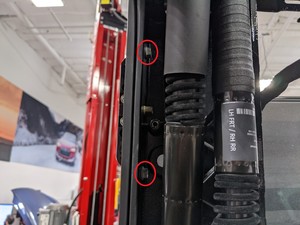 5 Nm (3.7 lbs-ft)NoteVerify installation direction with the guide tabs on the upper portion of the falcon wing door.Tip: Use of the following tool(s) is recommended:- T30 socket