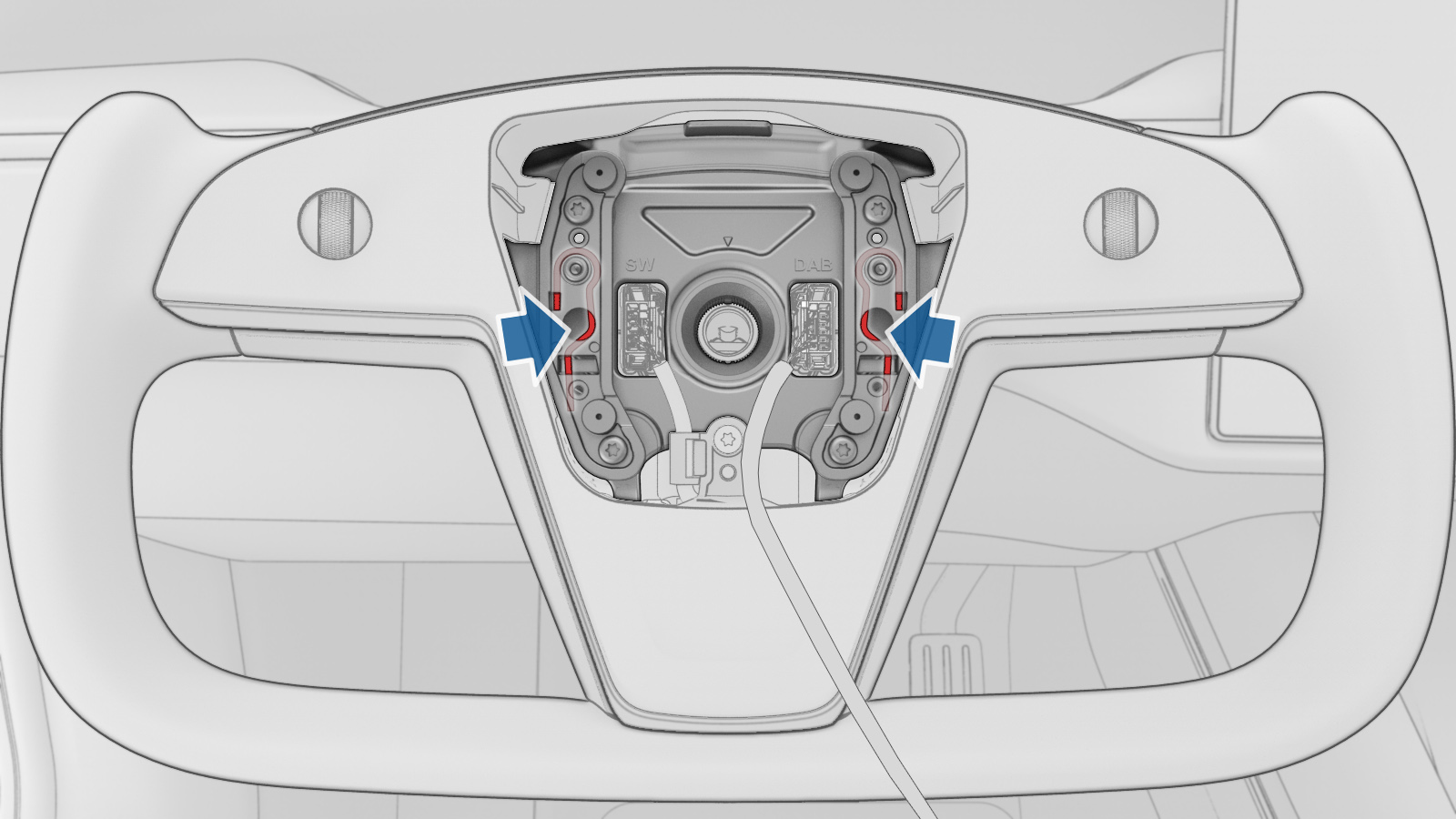 - Perform a light pull test on the RH side of the driver airbag to verify that it is properly secured to the steering yoke.