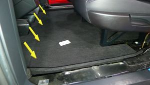 - Remove the LH 2nd row rear floor supports (x3) from the vehicle.