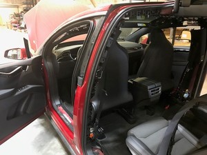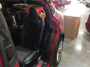 - Ensure that the falcon wing door seal is seated behind the LH rear racetrack trim.