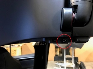 Install the screw that secures the LH rear racetrack trim to the spine racetrack.