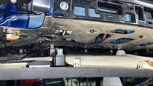 - Release the clips (x4) that attach the harness to the LH rear door mid gap hider.