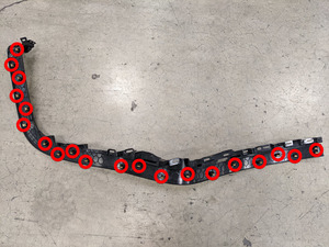 Position the LH rear racetrack trim on the vehicle, and then install the clips (x21) that attach the trim to the vehicle.