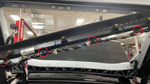 - Make sure the LH falcon wing door seal is seated behind the LH front racetrack trim.