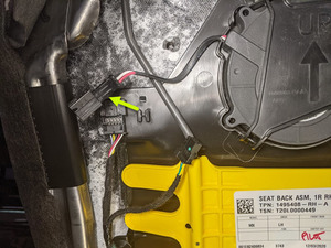 - Connect the fan controller electrical connector, and then slide the connector downward to attach it to the seat back suspension.