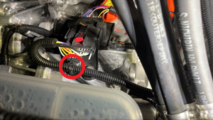 - Release the clip that attaches the electrical harness to the front drive unit LV harness bracket.