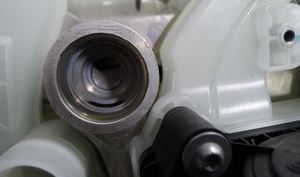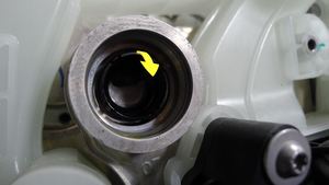 NoteIf the check valve separates from the aluminum cap during removal, do not use metal tools. Metal tools may scrape the supermanifold housing causing internal damage. Use fingers or wrap electrical tape around a 90 degree pick.